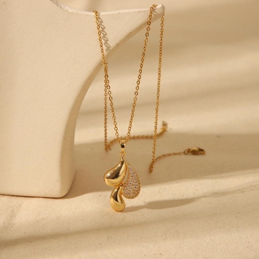 Discover the perfect balance of beauty and sophistication with our 3 Droplets Pendant Necklace. This exquisite piece is expertly crafted with 304 stainless steel and copper material, and features a stunning 18K gold plating process. Luminous water droplets in gold and steel colors create a mesmerizing effect on a delicate cable chain that weighs only 8g. Embrace the magic of this necklace for any daily or party occasion. This is a must-have for the modern woman who appreciates timeless style.