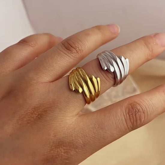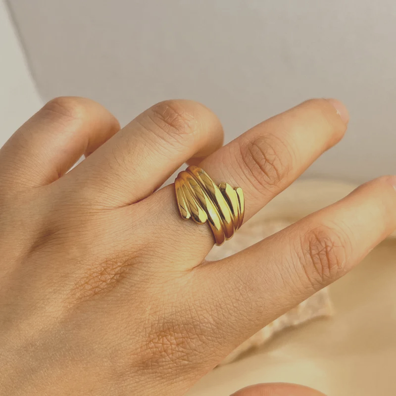 Meet the Amanda Ring - a gold plated stainless steel ring that's waterproof, hypoallergenic, and antitarnish. With its stylish and modern design, this ring is both elegant and luxurious, adding a touch of shine to any outfit. Say hello to your new favorite accessory!