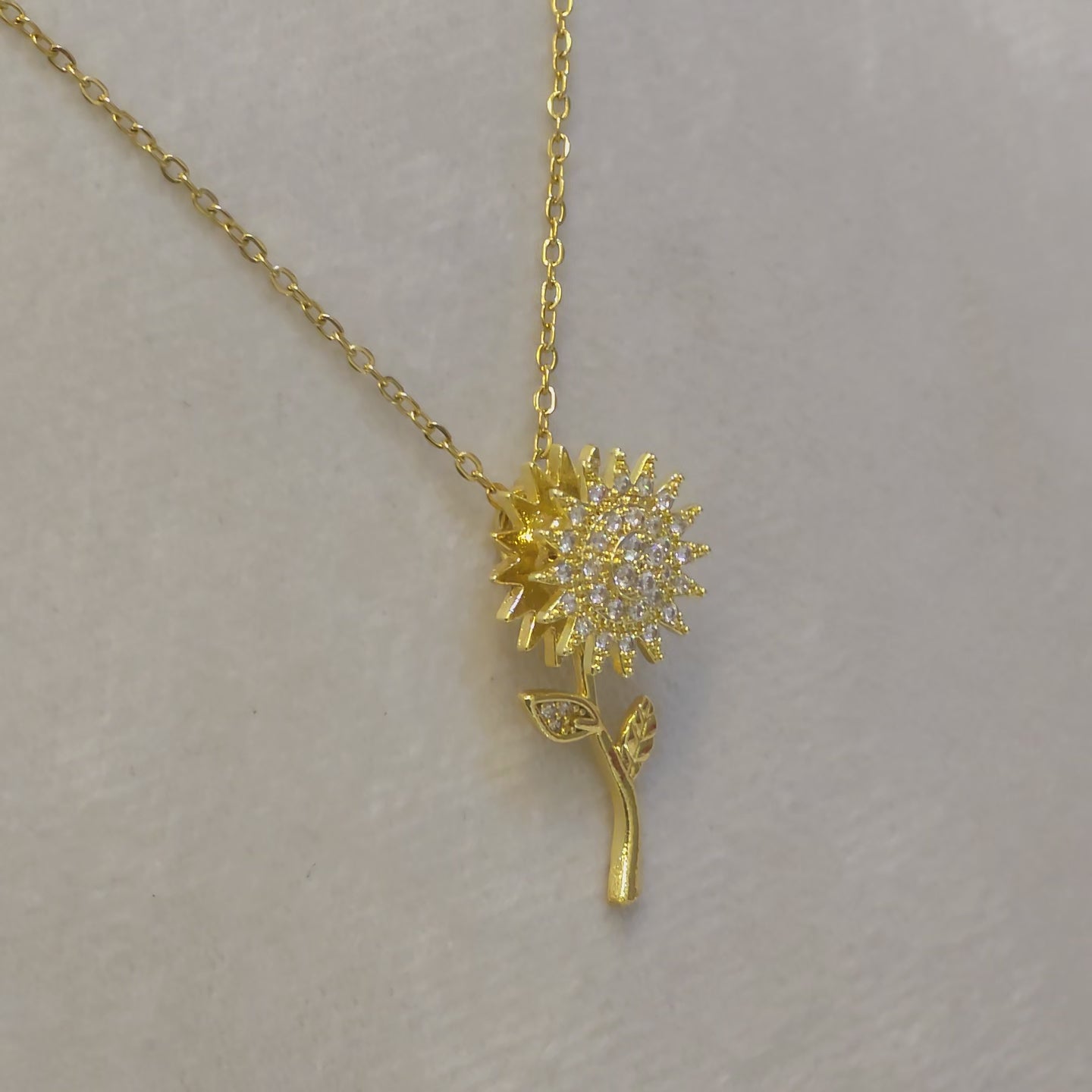 Design: Sunflower Inlay Pattern with Zircon Inserts for a Daily Pendant Necklace in Basic, Classic Style made of Durable Titanium Steel, perfect for Women and weighing a light 12g.
