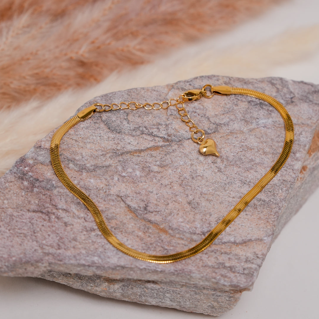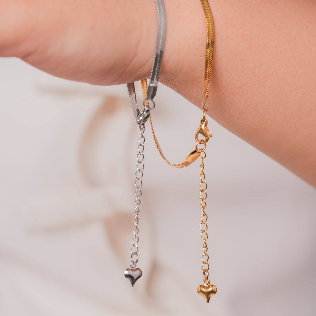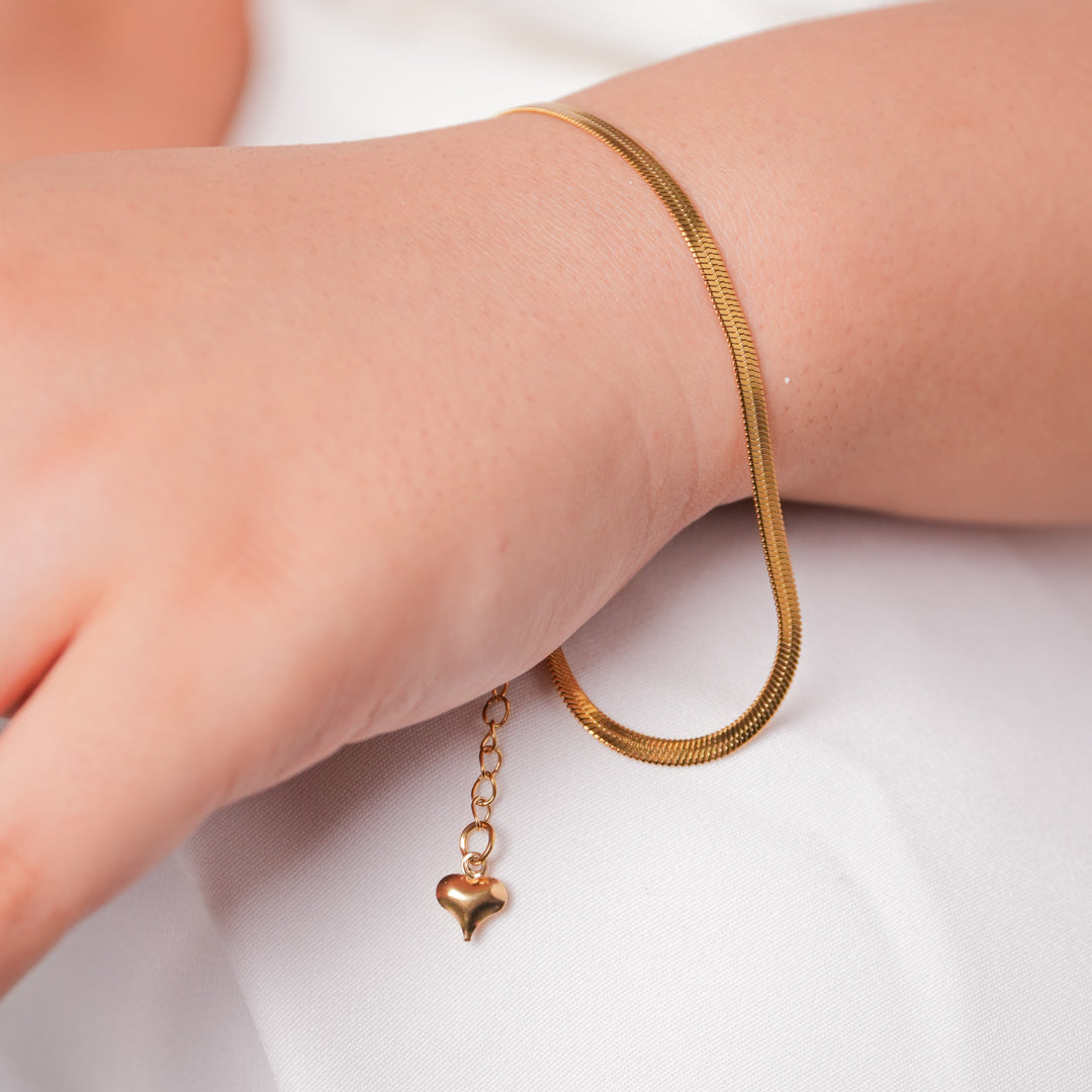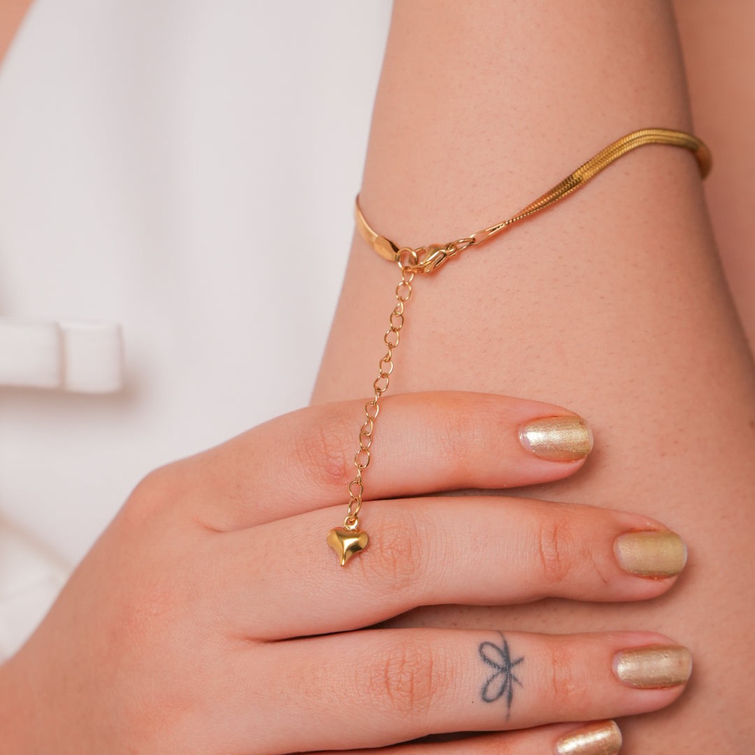Meet the HeartDrop Snake Bracelet – a sleek, minimal piece available in both gold and silver tones, designed to add a subtle romantic touch to your everyday style. With its smooth snake chain and delicate dangling heart charm, it’s the perfect blend of simplicity and elegance. The adjustable clasp ensures a comfortable fit for all wrist sizes, while the high-quality, anti-tarnish finish keeps it shining day after day. Whether you wear it solo or stacked, this bracelet makes a timeless statement.
