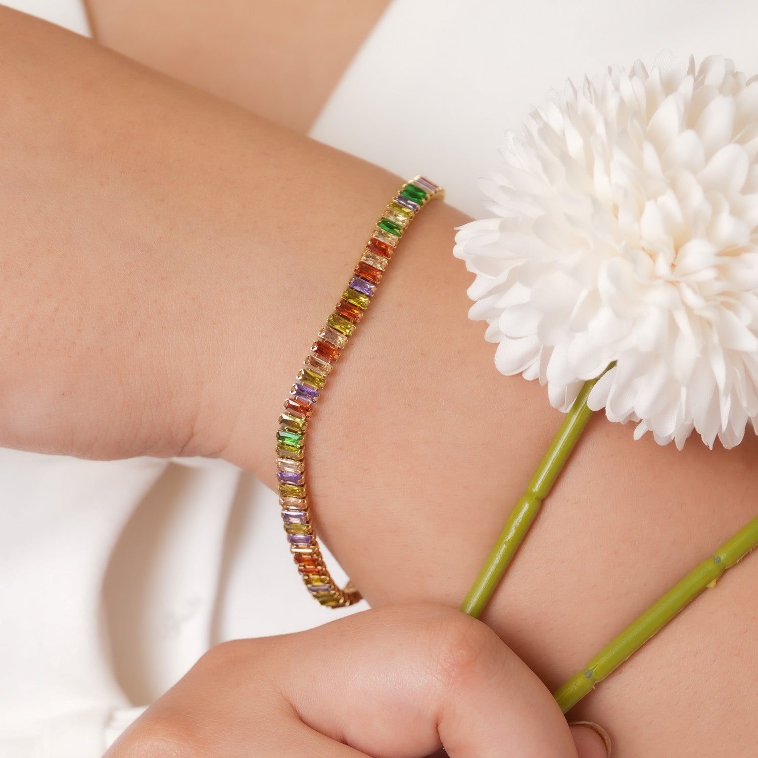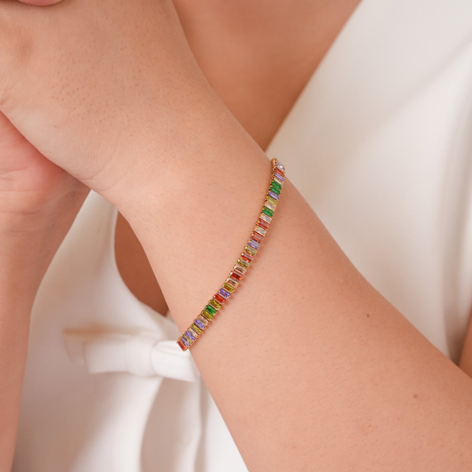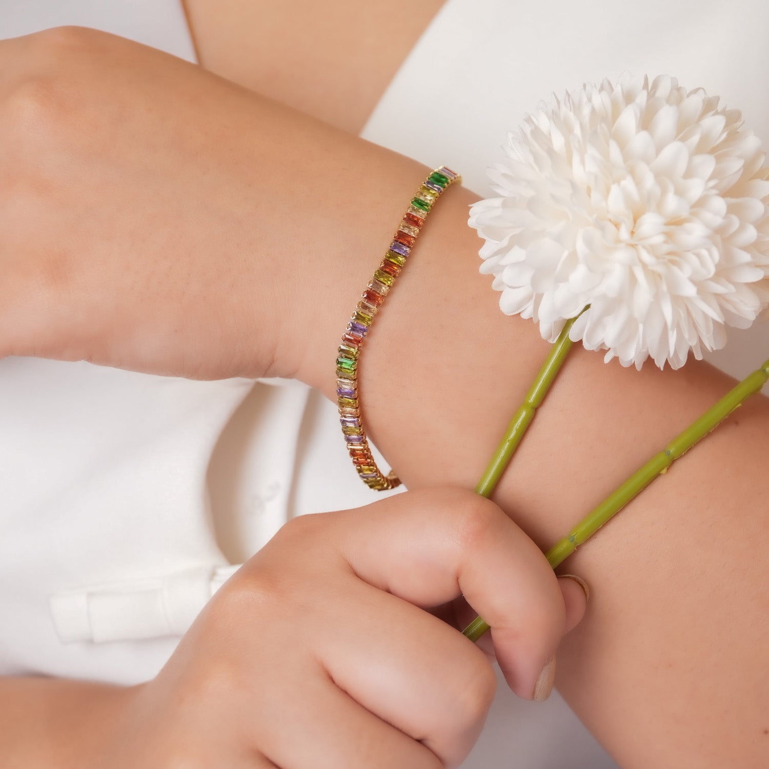 Elevate your style with our Timeless Tennis Bracelet, boasting luxurious thick 18K gold plating that retains its shine with each wear. Made from superior 316L stainless steel, this gentle hypoallergenic accessory is ideal for those with sensitive skin. Its waterproof and anti-tarnish qualities ensure enduring beauty throughout your daily routine. This thoughtful piece perfectly balances sophisticated design with enduring durability.