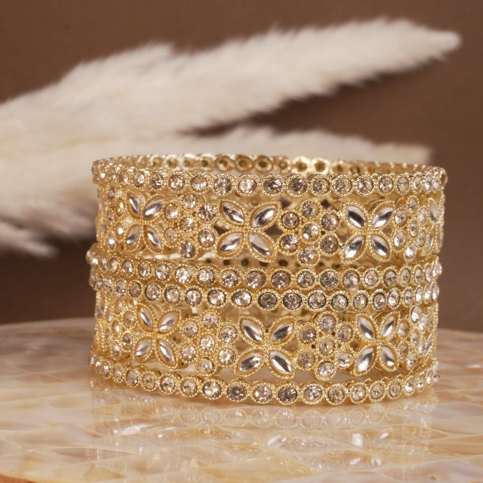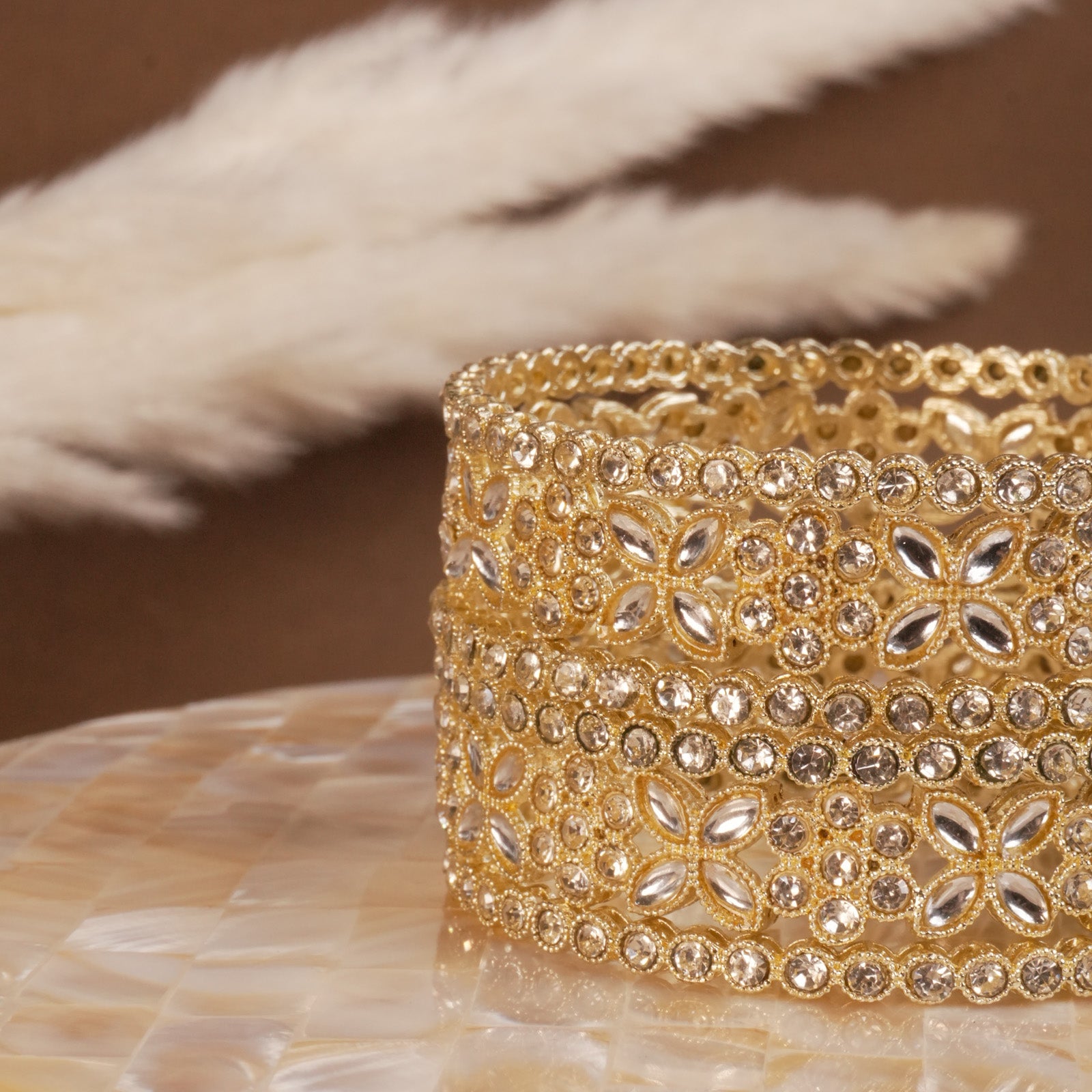 Elevate your ethnic look with our stunning copper antitarnish bangle set. This set features 2 kadas and 4 bangles adorned with intricate mirror and diamond work, adding a touch of elegance to any outfit. Perfect for parties and traditional occasions.