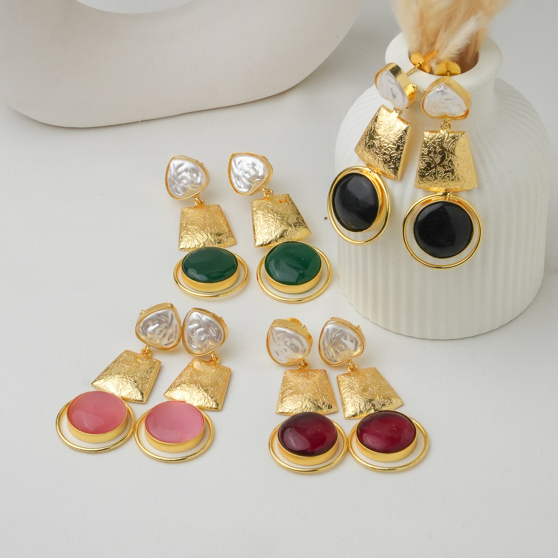 Elevate your accessory collection with the Kavya Brass Pearl Earrings, expertly crafted to combine timeless elegance with durable design. These earrings feature a refined brass base that ensures longevity, paired with lustrous pearls that add a sophisticated touch to any outfit. Ideal for both formal occasions and everyday wear, they offer a perfect balance of classic charm and modern resilience.