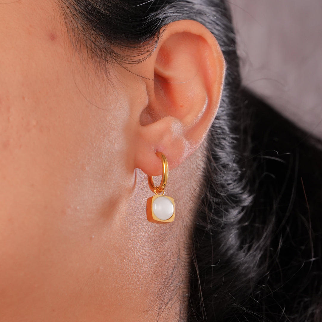 Elevate your everyday look with the Luna Cushion Earrings — delicate gold-toned hoops adorned with soft square charms set in lustrous mother-of-pearl. With their dreamy moonlit shimmer and modern shape, these earrings bring a subtle sophistication that transitions seamlessly from day to night.