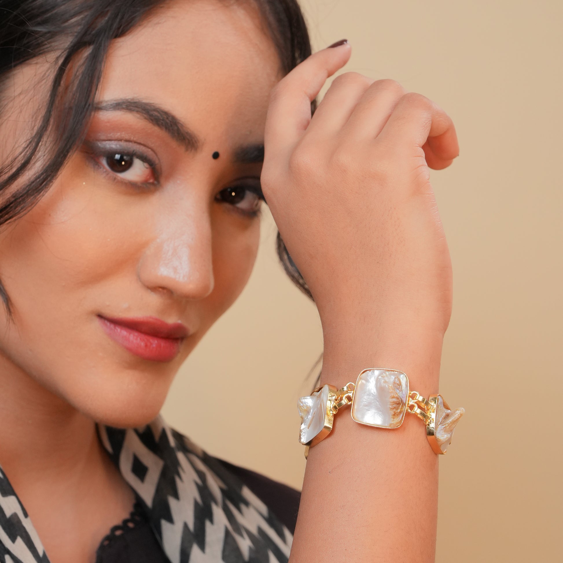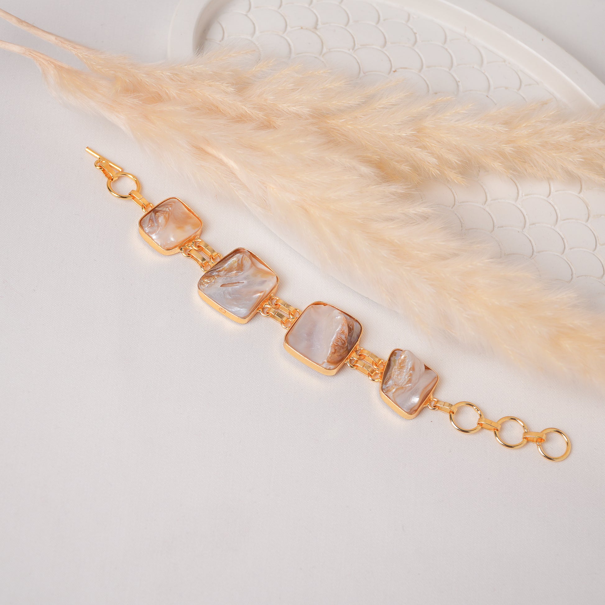 The MOP Chain Noor Bracelet combines refined craftsmanship with elegant design, featuring lustrous mother-of-pearl accents that catch the light beautifully. Its durable chain construction ensures lasting wear, making it a sophisticated accessory for both everyday and special occasions. This bracelet offers a subtle yet striking addition to any jewelry collection, reflecting expert attention to detail and quality.
