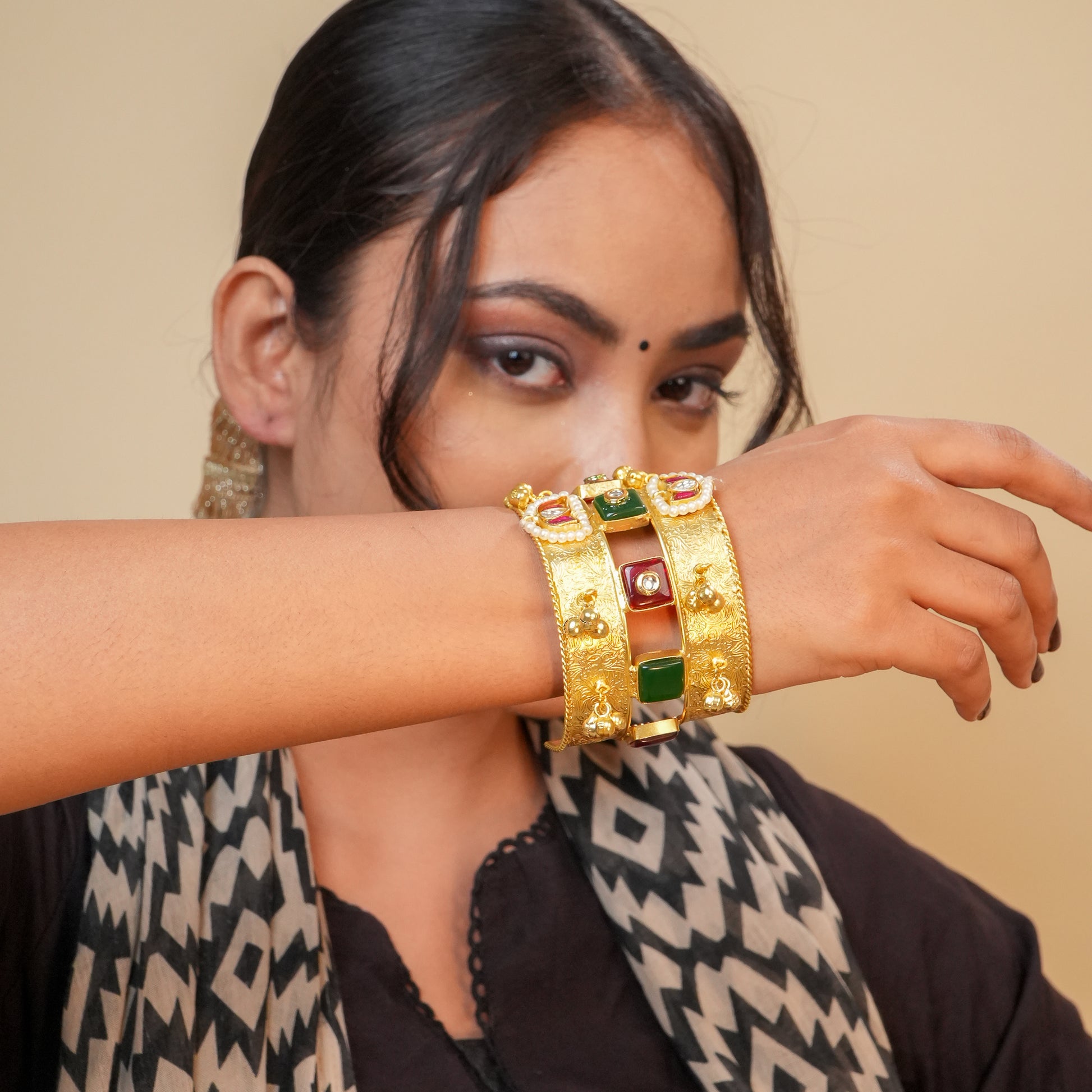 Whether paired with ethnic attire or styled as a statement piece, this bracelet is a celebration of timeless Indian craftsmanship with a bold, modern twist.
