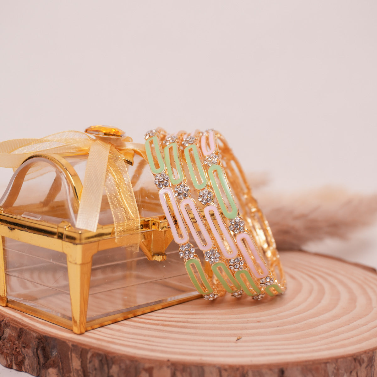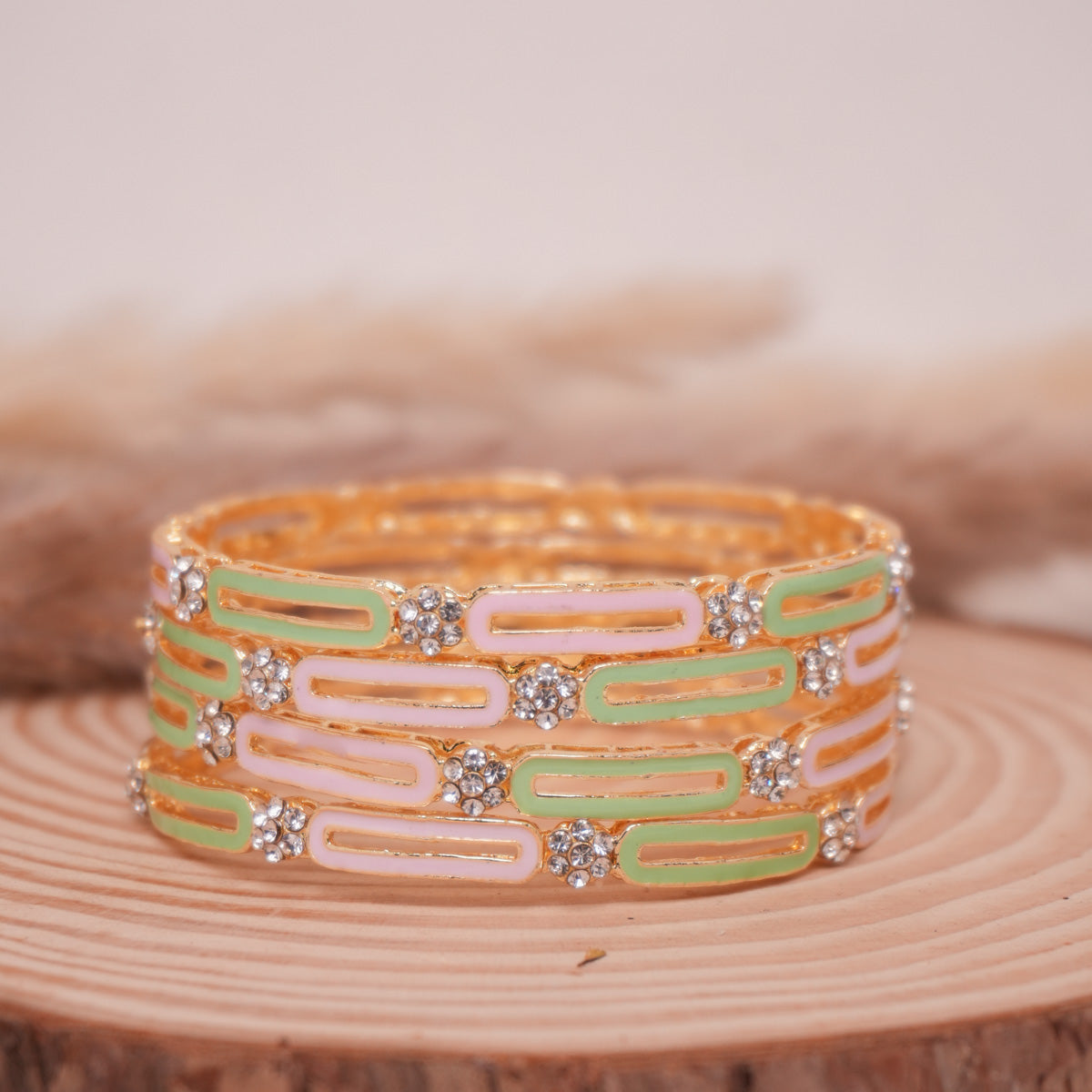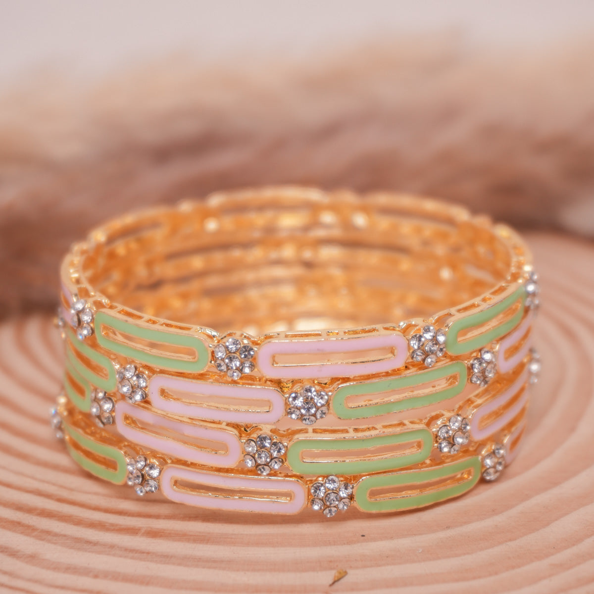 Enhance your ethnic ensemble with our Reeva Meenakari Bangles, showcasing exquisite traditional craftsmanship. These stunning bangles feature vibrant enamel work meticulously applied by skilled artisans, creating a perfect blend of heritage and style. Ideal for festivals, weddings, or everyday elegance, these timeless accessories will beautifully complement your traditional attire while adding a meaningful touch of cultural artistry to your jewelry collection.