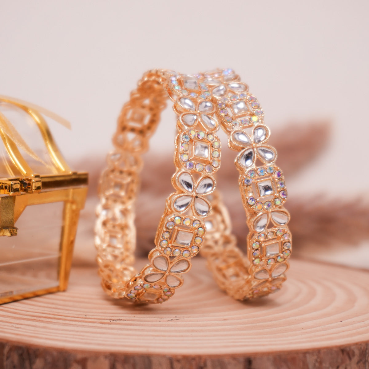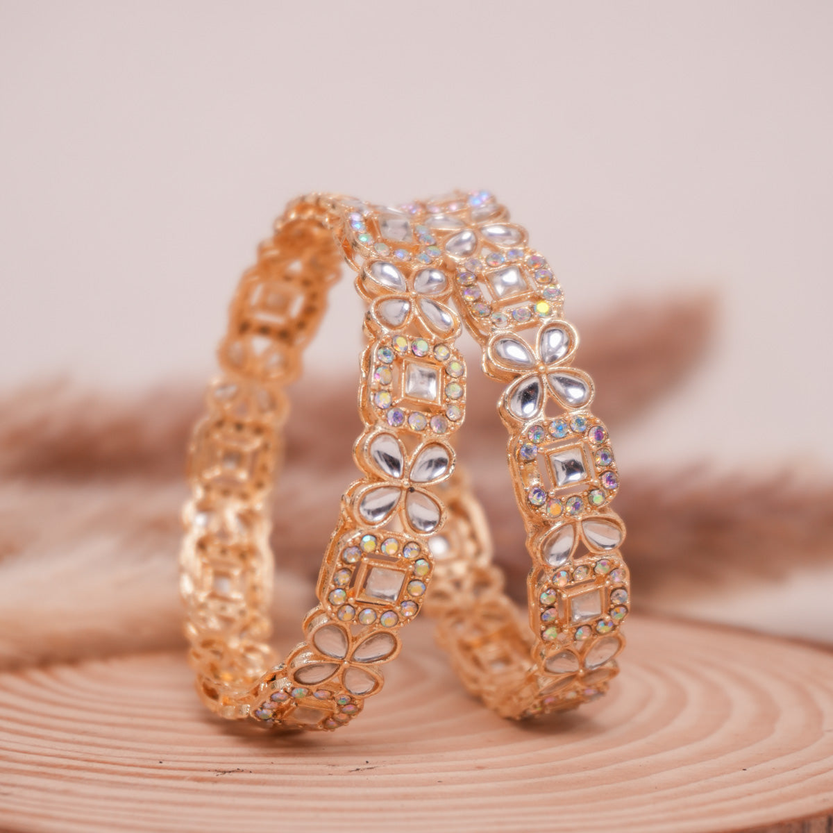 Adorn your wrists with our Ridhi Kundan Kada Pair, a beautiful fusion of ancestral artistry and modern sophistication. Each kada displays magnificent kundan detailing, carefully fashioned by expert craftspeople preserving generations of skill. Ideal for festive gatherings, wedding ceremonies, or bringing refinement to your daily style, these enduring accessories perfectly enhance your traditional outfits while paying homage to India's illustrious jewelry craftsmanship.