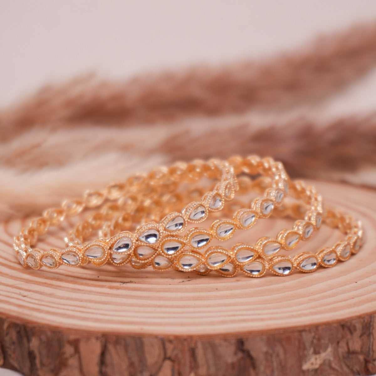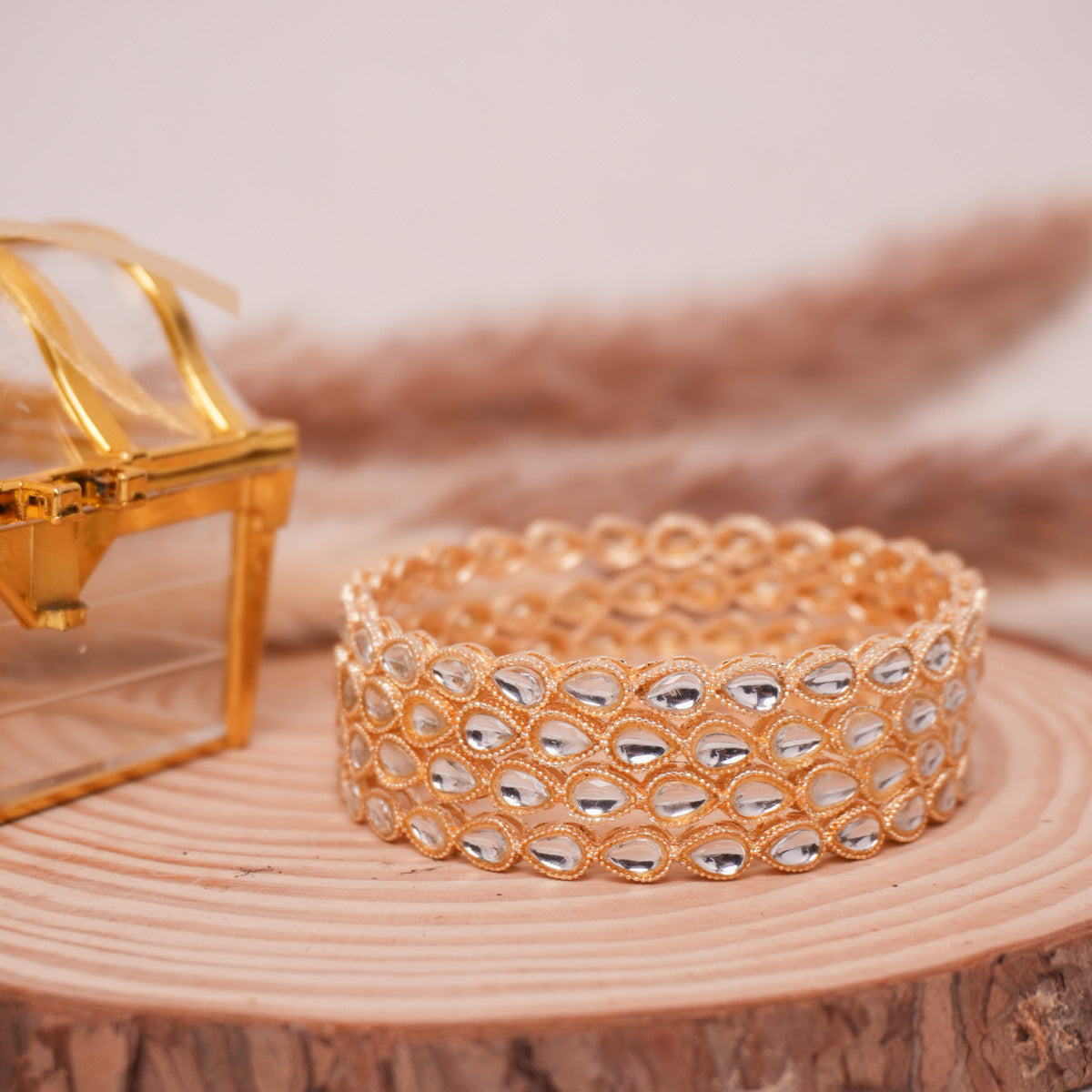 Enhance your traditional ensemble with our Vedika Tilak Kundan Bangles Set. These exquisite bangles feature delicate kundan work with distinctive tilak patterns, crafted by skilled artisans to ensure both beauty and durability. Perfect for celebrations, festivals, or wedding ceremonies, they add a touch of timeless elegance to your ethnic attire while honoring traditional craftsmanship.