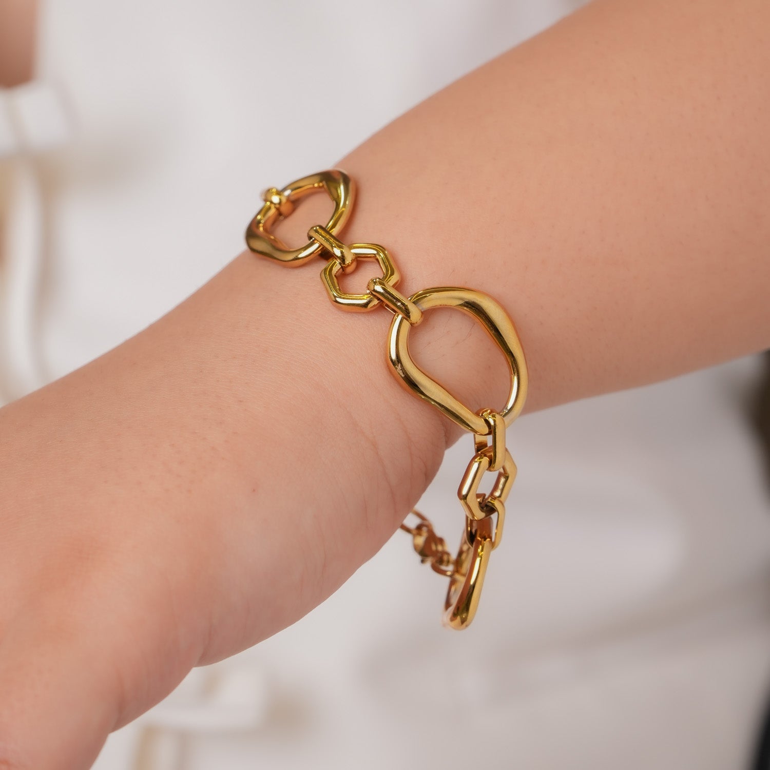 Shell Curve Luxe Bracelet features exquisite 18K gold plating on high-quality 316L stainless steel. This hypoallergenic piece boasts waterproof and anti-tarnish properties, ensuring lasting brilliance. Its elegant shell-inspired curved design combines sophisticated luxury with everyday wearability, making it ideal for sensitive skin while providing both comfort and enduring beauty.