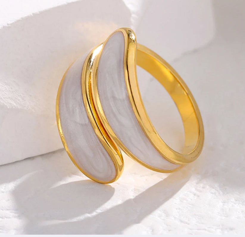 "Add a touch of playful style to any outfit with the Sophia Enamel Ring. Made with premium stainless steel and a stunning 18k gold plated finish, this ring is not only eye-catching but also waterproof and skin-friendly. Plus, its freesize design makes it a perfect fit for anyone. Get ready to shine with this amazing white enamel ring!"
