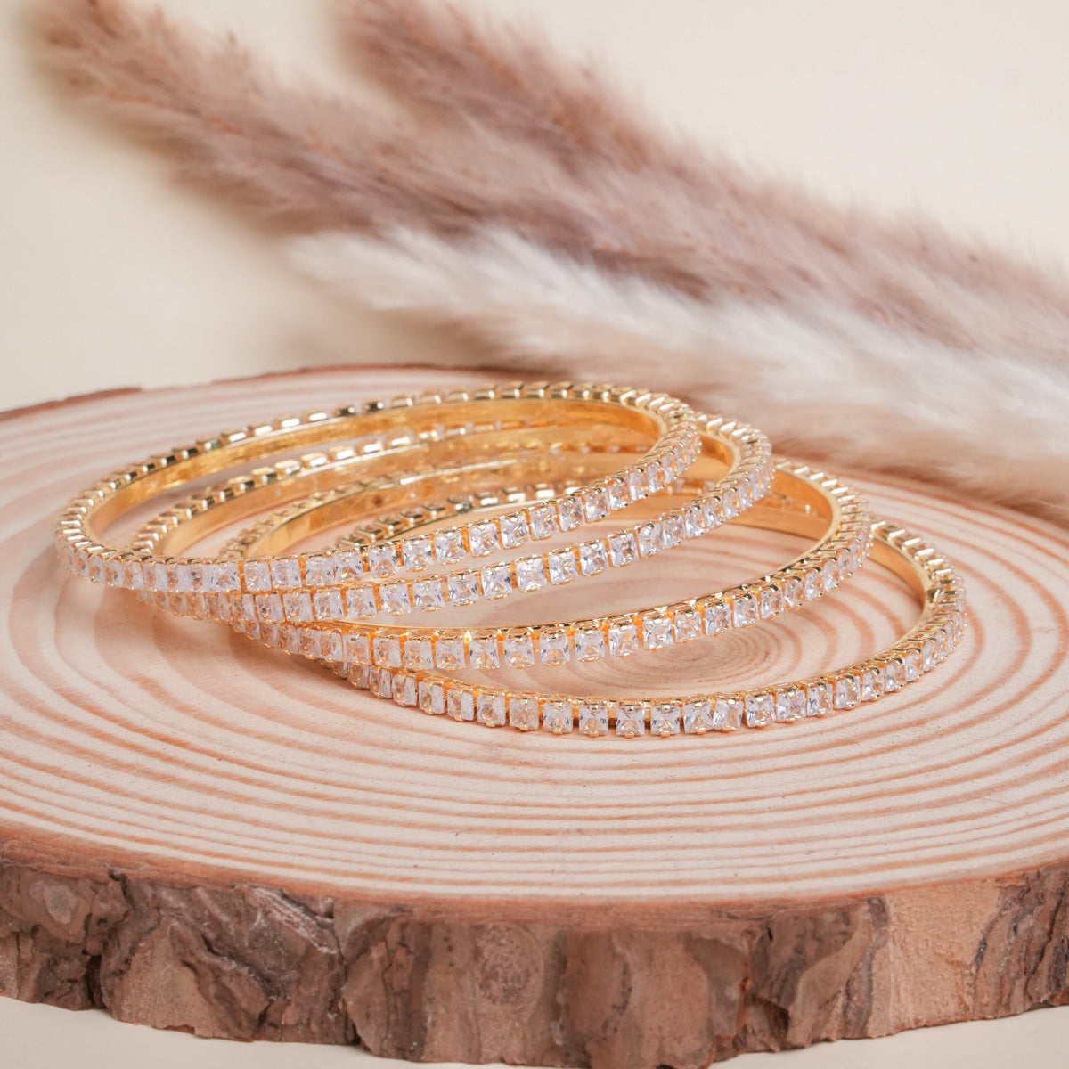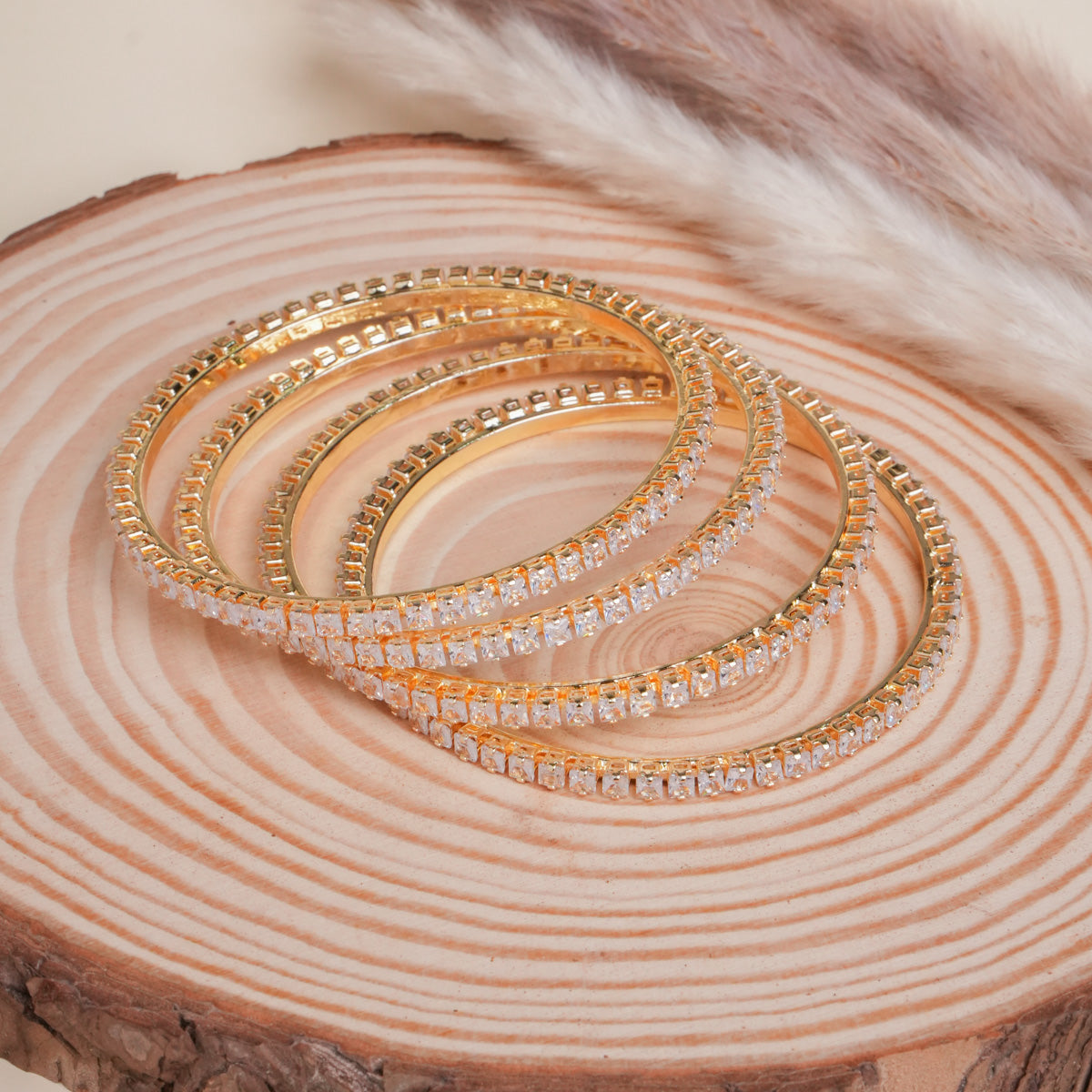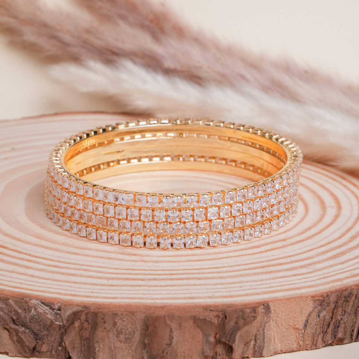 Elevate your style with Tarya AD Bangles, featuring premium American diamonds. These lovely bangles are perfect for both daily and office wear, adding a touch of elegance to any outfit. Make a statement with the best quality and design.