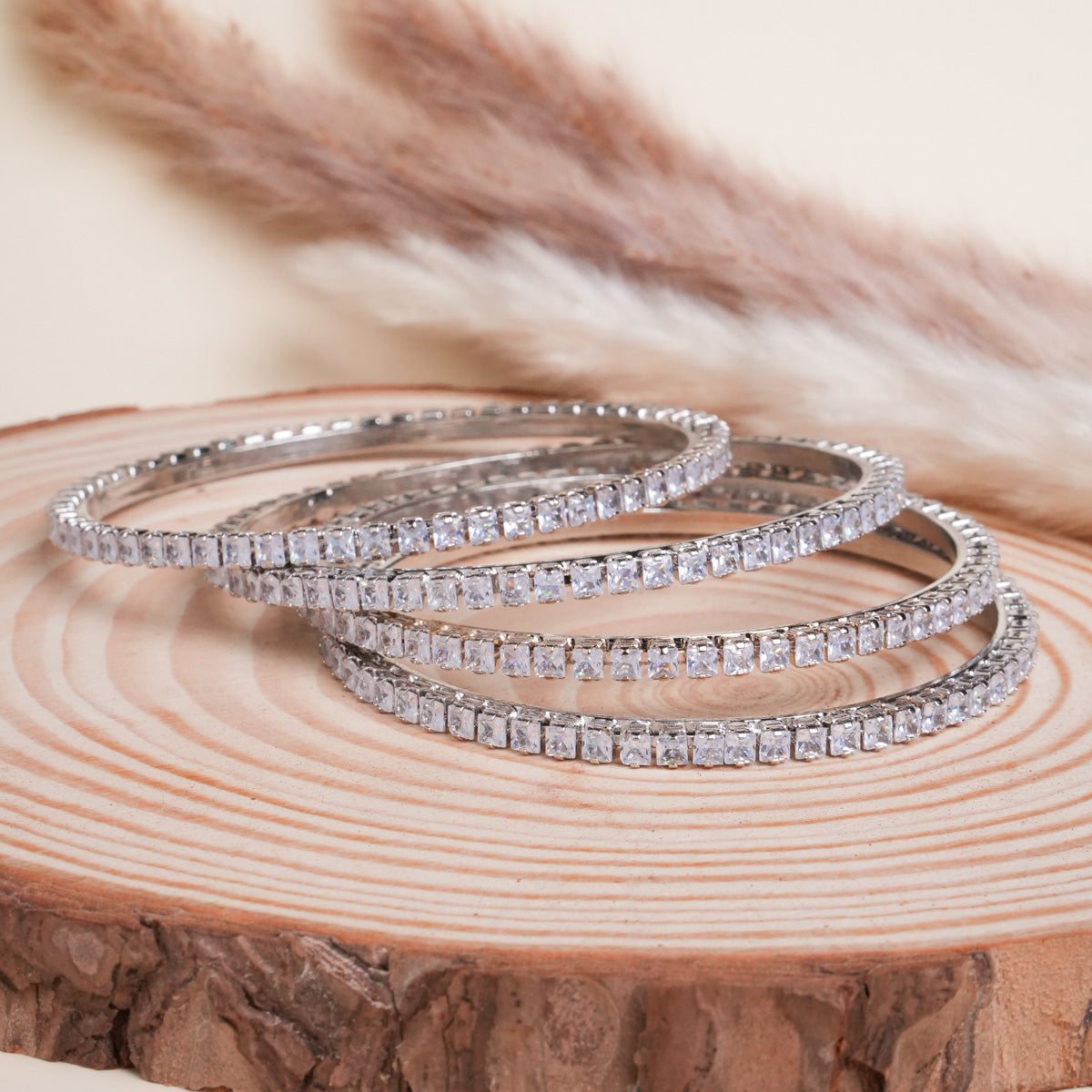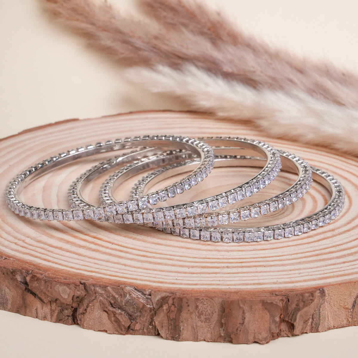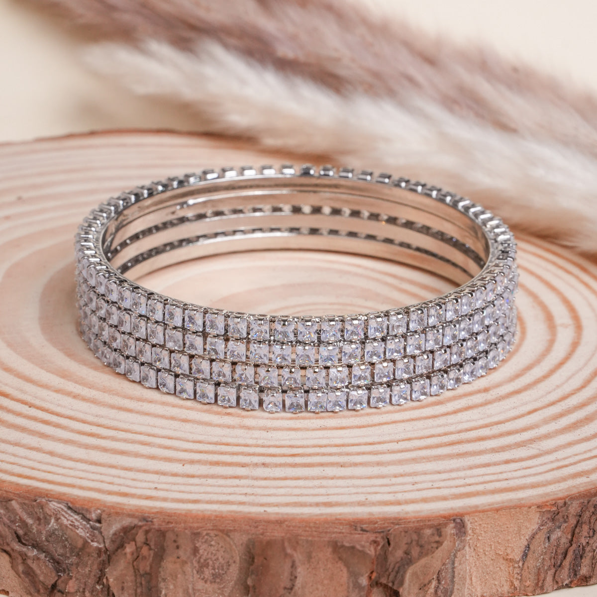Elevate your style with Tarya AD Bangles, featuring premium American diamonds. These lovely bangles are perfect for both daily and office wear, adding a touch of elegance to any outfit. Make a statement with the best quality and design.