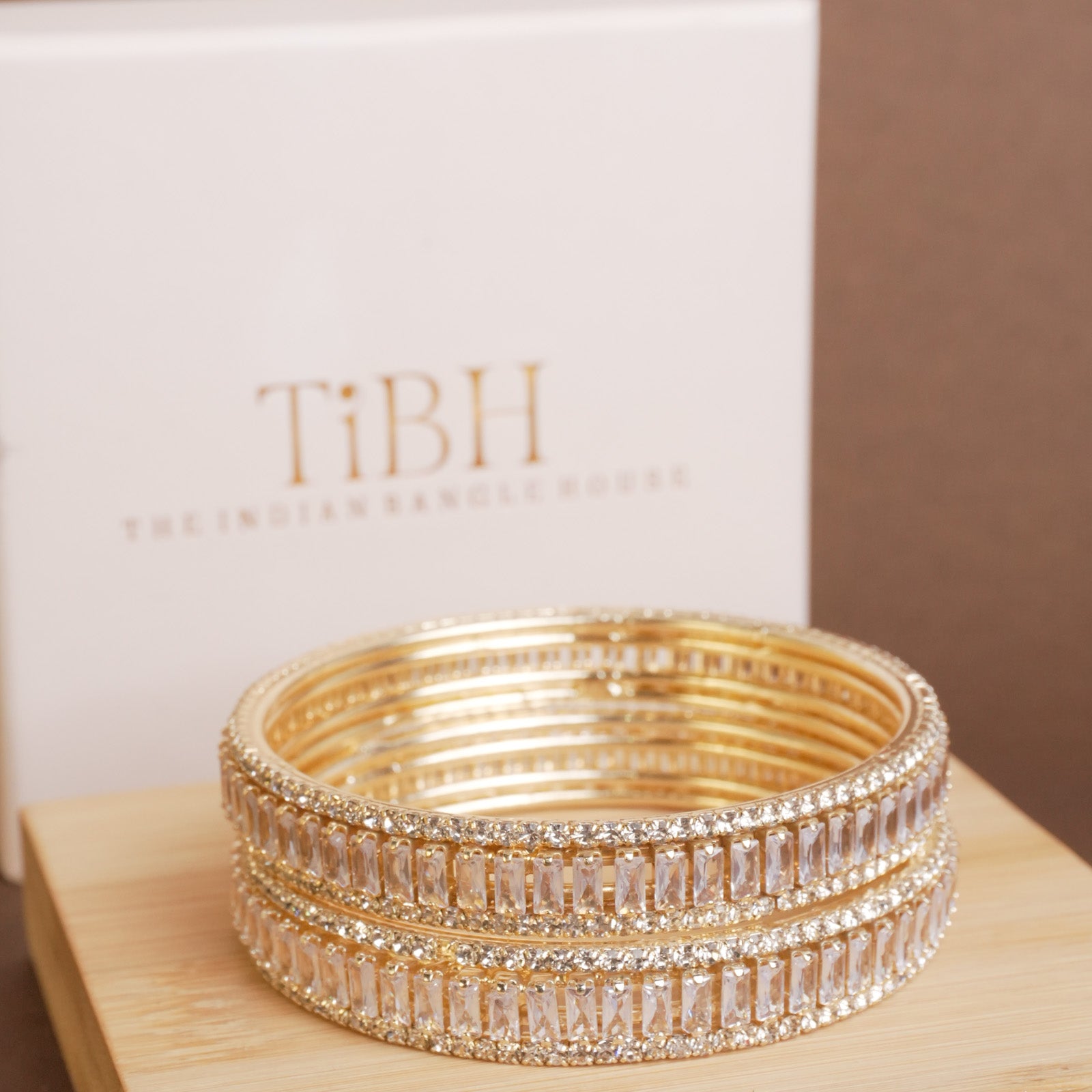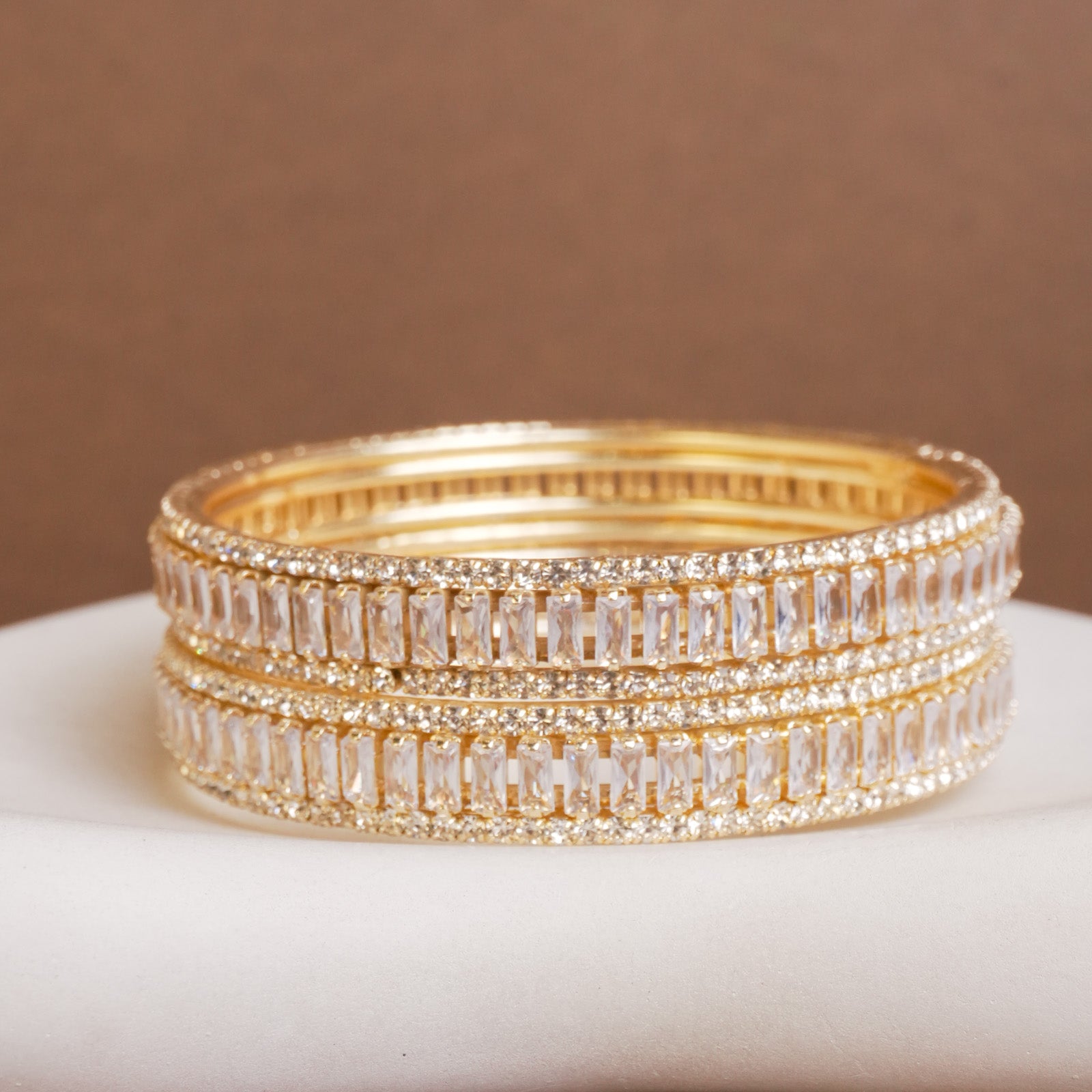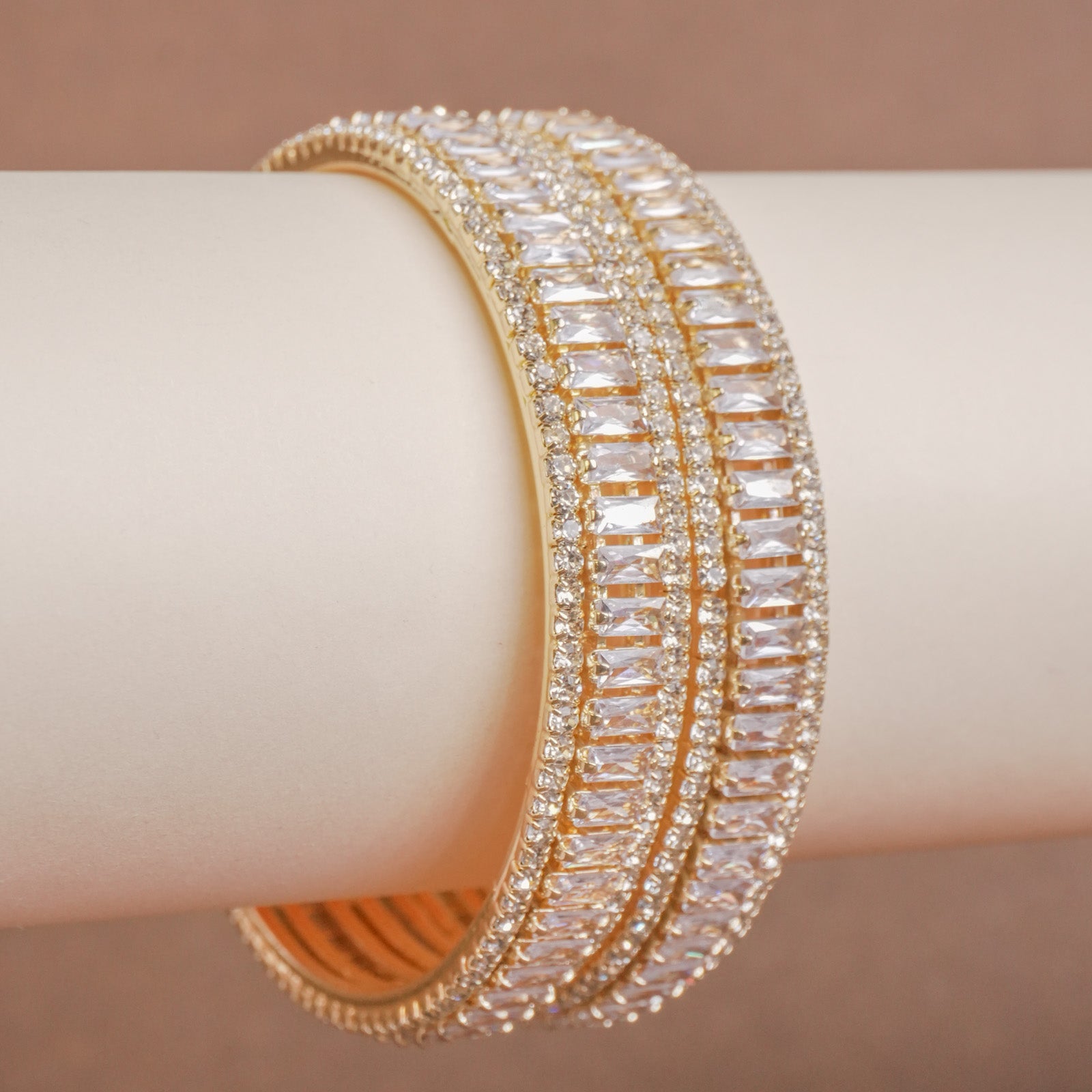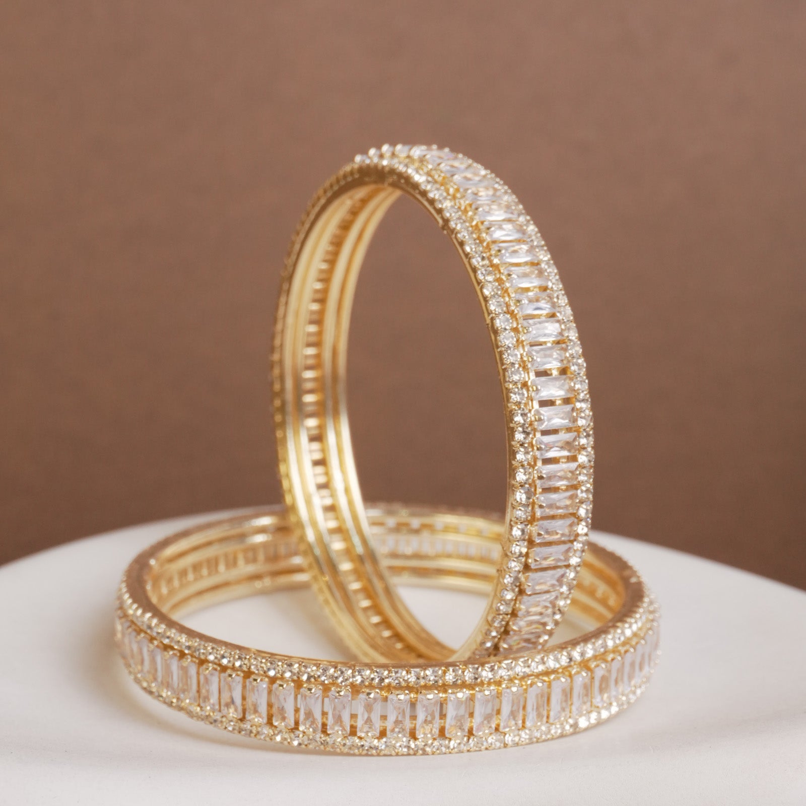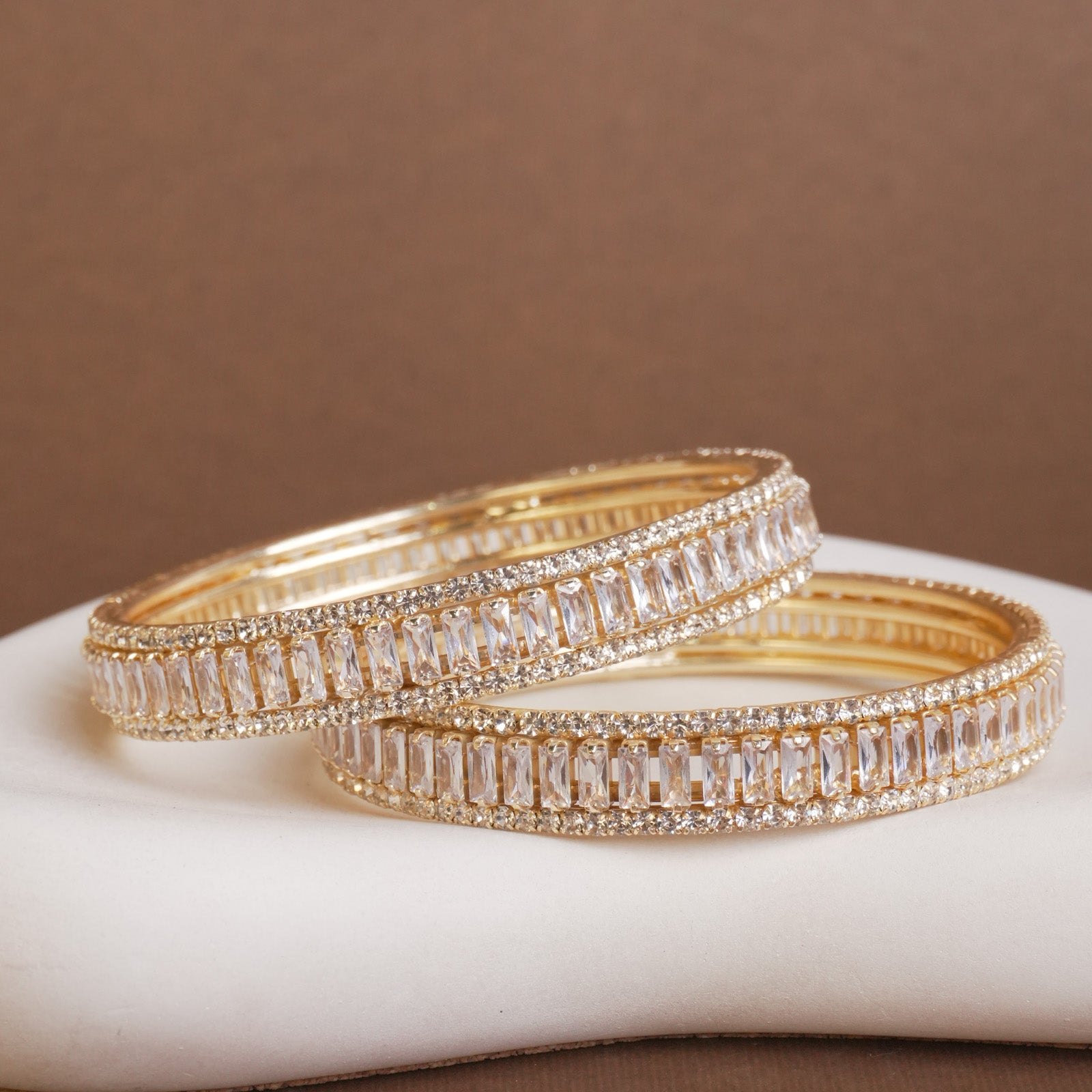 Add a touch of elegance to your outfits with our Trisha AD Kada Pair. The golden tone and American diamond stones create a unique, exclusive look that is sure to catch the eye. Elevate your style and make a statement with this stunning accessory.