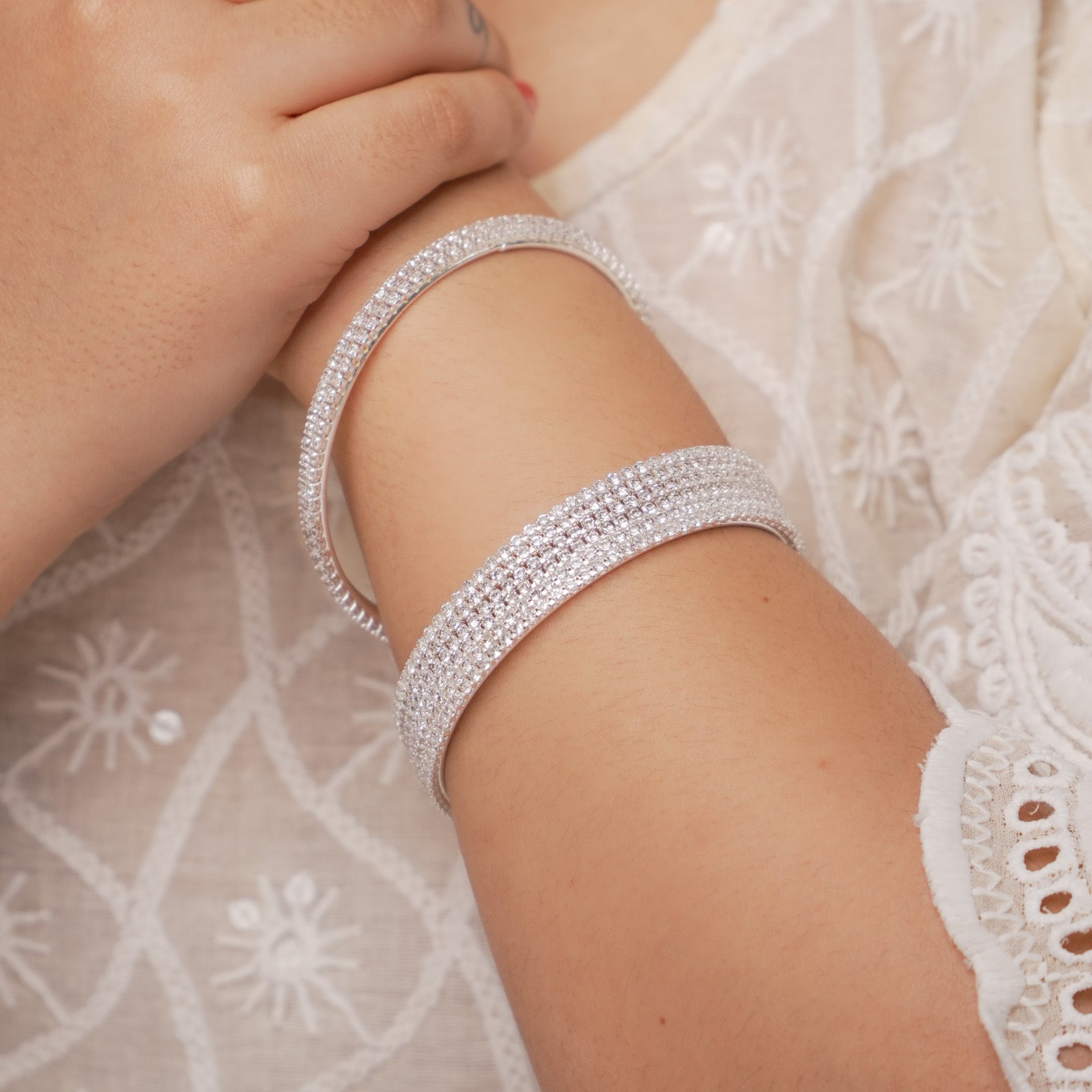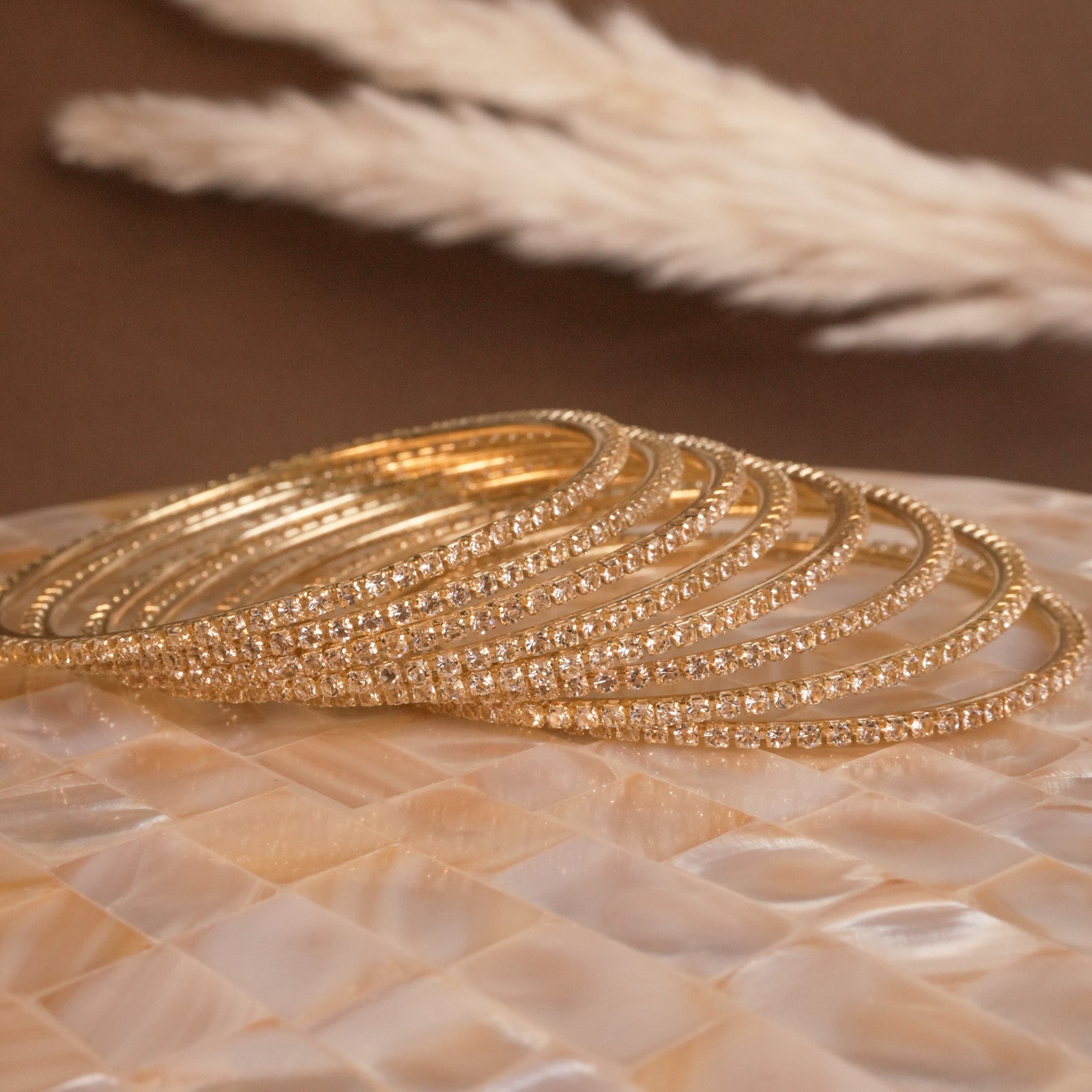 Upgrade your jewelry game with Minimal Myra AD Bangles! This set of 8 bangles, available in gold, rose gold, and silver, features stunning minimal ad stones for added elegance. Made with premium quality and incredible craftsmanship, these bangles are a must-have for any fashionista. Choose your color and elevate your style now!
